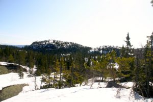 Da jeg skulle sjekke på mobilen min hvor lang tid jeg hadde brukt opp, oppdaget jeg at telefonen hadde falt ut av lomma på vei opp. Normalt tar jeg meg god tid på toppene, i alle fall der utsikten er god, og det er den på Jonsknuten. Men nå ble det bare en småstresset fotoseanse før jeg la i vei ned igjen med øynene i bakken, på utkikk etter telefonen. Heldigvis fant jeg den igjen nede i bakkene. Svart telefon på hvit snø er en gunstig kombinasjon. Den lå ikke lenger ned enn at jeg lurte på å gå opp igjen, men jeg fant ut at jeg heller tar en tur tilbake litt senere og fullfører fotodokumentasjonen da. Skylaget lå litt lavt over enkelte av fjellene rundt. Klokka på mobilen hadde naturligvis fortsatt å holde regning den tiden vi var adskilt, og da jeg kom ned til bilen igjen viste den at hele turen hadde tatt 37 minutter. Ikke akkurat noen langtur, men innimellom er det greit med en svipptur. For de som ønsker en lengre og hardere tur, kan man kjøre inn til alpinanlegget i Funkelia og gå derfra.