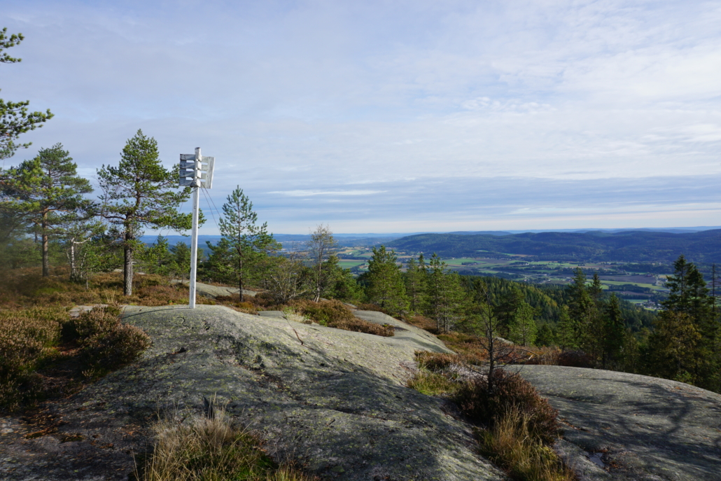 Uansett, 40 kr ble puttet i kassa på bomveien nede i bygda. Deretter var det bare å kjøre de 5 kilometerne opp til skaret mellom Fjellskar og Søndre Fjellskar. Jeg ruslet først opp til Fjellskar, forbi ei hytte og opp ei trapp (av alle ting) opp til topp-platået på kollen. Det er et ganske stort topp-platå, så de som er ute etter utsiksikt må tråle litt rundt på kryss og tvers for å få med seg alt. Og Fjellskar leverer bra i de fleste retninger. Vestover ser man dypere inn i Vestskogen. Nordover ser man mot Konnerud og Drammen. Faktisk ser man greit inn til Hørtekollen ved Sylling. I øst og nordøst ser man Røysjømarka og helt inn til Tryvannstårnet. Sydover er det Sande og Sandebukta som ligger i synet.