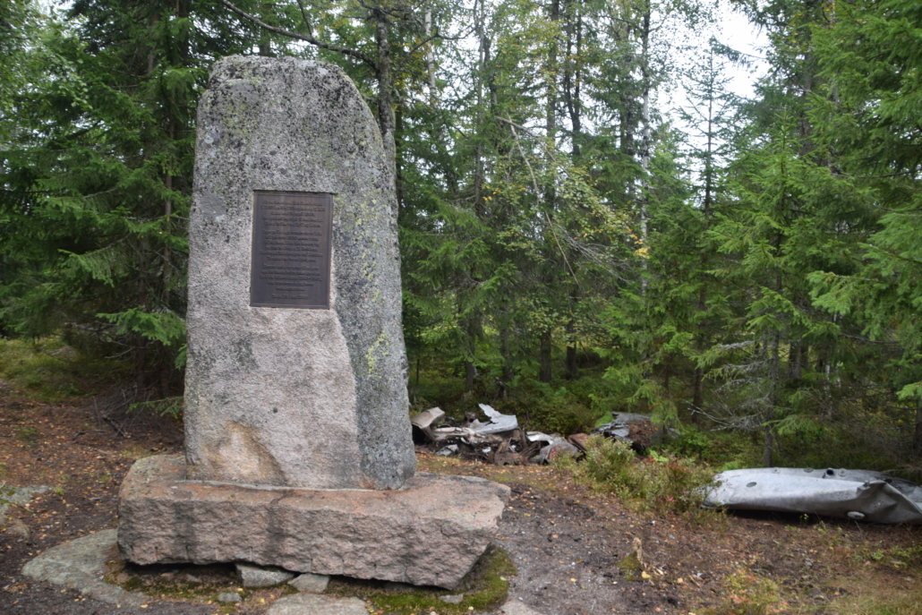 Veien tilbake til bilen valgte jeg å legge på stien over Grasåsen. 300 meter inn på denne stien fra veien står det et minnesmerke over en hendelse fra 2. verdenskrig. 9. april 1940 ble et britisk Short Sunderland båtfly skutt ned av tyskerne på dette stedet. Ni av de ti i besteningen ble drept, mens den tiende, Ogwyn George, overlevde et fall på rundt 1000 meter takket være tett skog og dyp snø. De ni som omkom ligger begravet ved Sylling kirke. Rundt minnesteinen ligger det vrakrester fra det nedskutte flyet.
