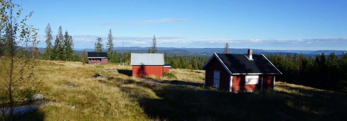 Utsikten fra stra var også upåklagelig. Panoramaet som bredte seg ut i nord overgås ikke av noe annet jeg har opplevd i Drammensmarka, verken nord eller sør for elva. Jeg ble stående å fotografere litt før jeg ruslet videre. Nå ble kursen satt sørvestover, mot Ryggetangsetra. Det gikk en dårlig sti opp åsen bak Bjørgesetra som jeg fulgte. Det var et svært hogstfelt her som gjorde stien vanskelig å følge, men utsynet desto åpnere. Jeg karret meg bort til et framspring på åsen, og oppdaget at det allerede spektakulære panoramaet fra Bjørgesetra var blitt enda noen hakk bedre her oppe, hvor jeg kom fri fra vegetasjonen nede ved setra. Tømmerhoggerne hadde dog spart noen ospetrær, så helt fritt ble det ikke, men bra nok til at jeg konkluderte med at dette var den beste utsikten jeg har hatt i år, Jonsknuten holdt utenfor. Med god kikkert hadde jeg sågar klart å se inn på soverommet mitt.
