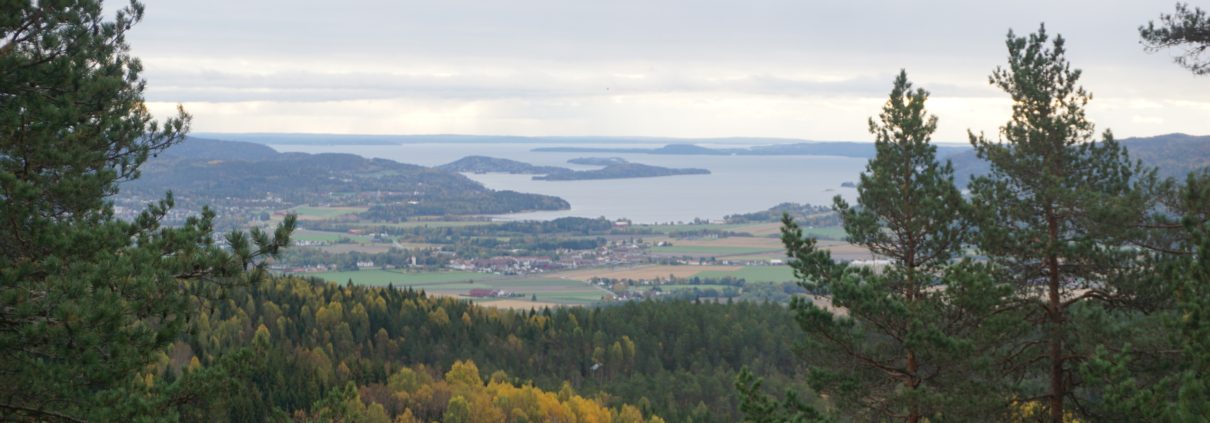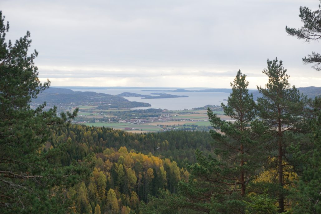 Målet for turen var 4 topper på og rundt Skog-Slettåsen, hvorav den første toppen, Vesle-Munken, lå behagelig nære bilveien inn til Øyvannet. Det var tydelig at en slik lett tilgjengelig topp frister folket, for det var god sti ut til pynten. Da jeg kom ut til pynten forsto jeg også hvorfor kollen frister folket. Under meg hadde jeg relativt storslagen utsikt mot Sande og Sandebukta. Jeg knipset noen bilder og fortsatte å gå oppover veien mot Øyvann og fulgte den så langt jeg kunne mens jeg hele tiden hadde Store-Munken til høyre for meg. Til slutt måtte jeg ta turenut i terrenget, og opp på Store-Munken. I luftlinje var det rundt 300 meter fra bilveien, så det var ikke noe stort problem. Kollen var i tillegg lett-navigerbar på grunn av tynnvokst skog.