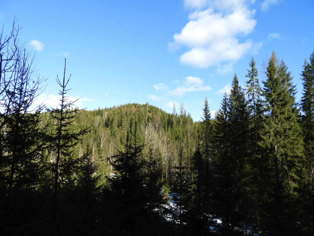 Neste og siste mål på turen var Vallevollåsen som lå 600 meter i luftlinje fra Sauekollen. Det var ingen mulighet for stigåing så det var bare å peile seg ut en kurs i terrenget. Terrenget var rimelig lettgått, men noen få snøflekker var tunge å tråkke seg gjennom. Etter hvert fikk jeg også øye på målet. Vallevollåsen er en karakteristisk framtoning, fra flere kanter skulle det vise seg. Det var mye tett granskog som måtte forseres før jeg kunne si at jeg var oppe på toppen. Heller ikke denne er noe opplagt mål for utsiktsjegere. På toppunktet er det ingen ting å se i noen retning. Ned fra toppen tok jeg en vestlig rute mot Egga og veien som går langs den. Det var den samme tette granskogen på vestsiden også, men det gikk greit å få karret seg ned på veien. Herfra var det bare å følge vei på resten av turen.
