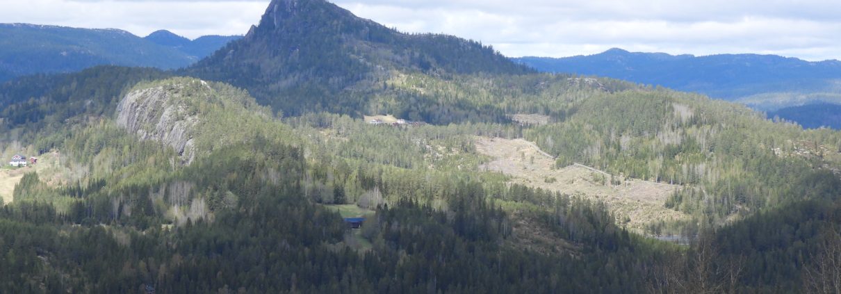 Det siste året har jeg i store trekk bare holdt meg i Drammensmarka, både på nordsiden og sydsiden av Drammenselva. Og selv om det bare har vært hyggelige turer der, så blir det litt ensformig med tanke på vegetasjon og terrengtyper. I tillegg er det etter hvert få steder jeg ikke har vært i områdene rundt Drammen. Dermed kan det være greit å se litt videre ut i Buskerud. Jeg har jo et uttalt mål om å komme meg opp på alle kommunetoppene i fylket. 5 har jeg allerede vært oppe på, så nå er det bare 16 igjen. De som gjenstår befinner seg stort sett alle over 1000 moh. Siden våren har vært kald og snørik, tror jeg det kan være greit å vente en uke eller to på å prøve seg på de. Men fylket har jo mange spennende topper som er lavere enn det. En av de er en topp jeg har sett flere ganger når jeg har kjørt mellom Sigdal og Numedal. Toppen har et karakteristisk utseende og er et landemerke sett fra flere kanter. Toppen heter Tekslehogget, eller Tekslehøgget på lokalt mål. Et annet navn på toppen er Hovsnatten. Fjellet er et grensefjell mellom Flesberg og Rollag kommuner. Høyden er ikke avskrekkende, kun 721 moh.