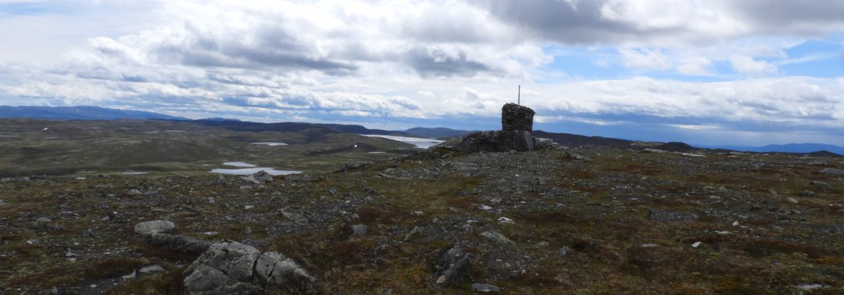Ryggen er grei å følge mot toppen, det går sti, og det tok ikke mange minutter før jeg var ved toppvarden. Utsikten er et nydelig 360 graders panorama med utsyn over store deler av Buskerud. Jeg kikket litt, men vinden gjorde det ubehagelig å være der, så jeg snudde og gikk ned igjen så fort jeg kunne.