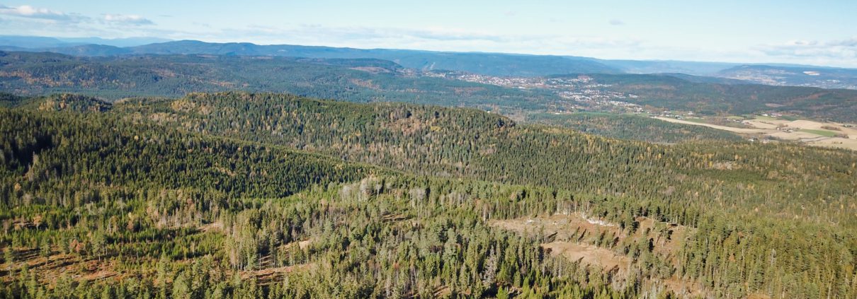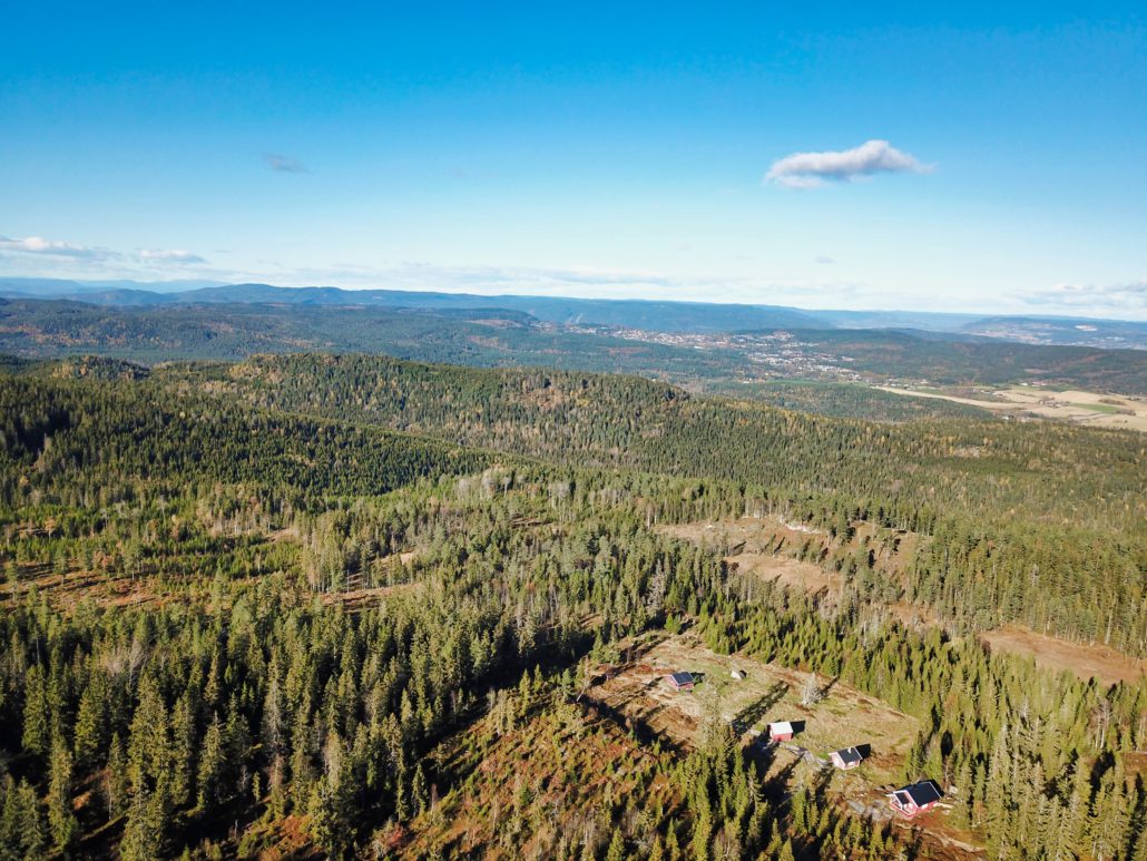 Bjørgesetra har i seg selv ikke verst utsikt fra vollen, men man oppnår mye mer ved å gå litt opp i lia bak setra. Her ble det hogd for en del år siden, så sikten er nesten uhindret. Nesten, fordi det står igjen et par gamle ospetrær som ikke ble hogd. Det er her drona kommer inn i bildet. Den flyr greit over slike hindringer, og får fri sikt.