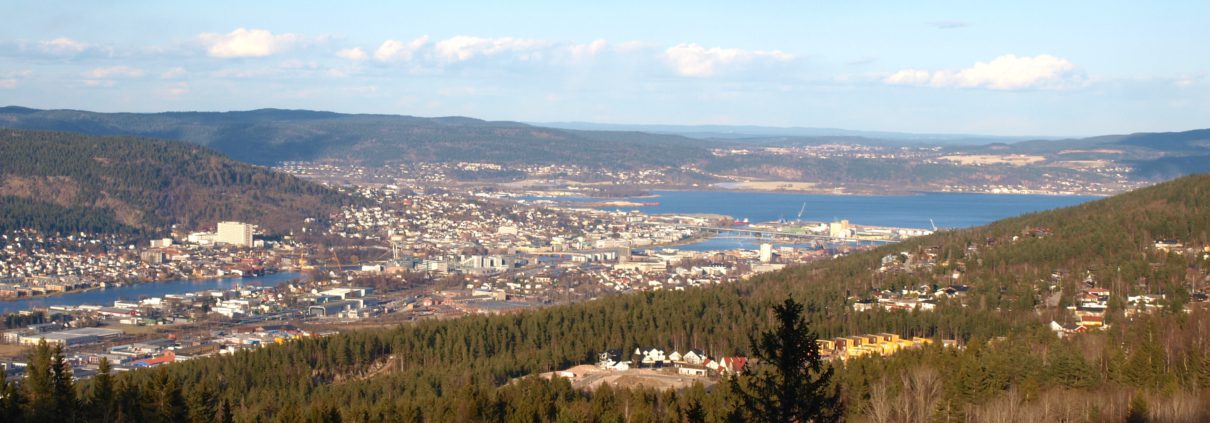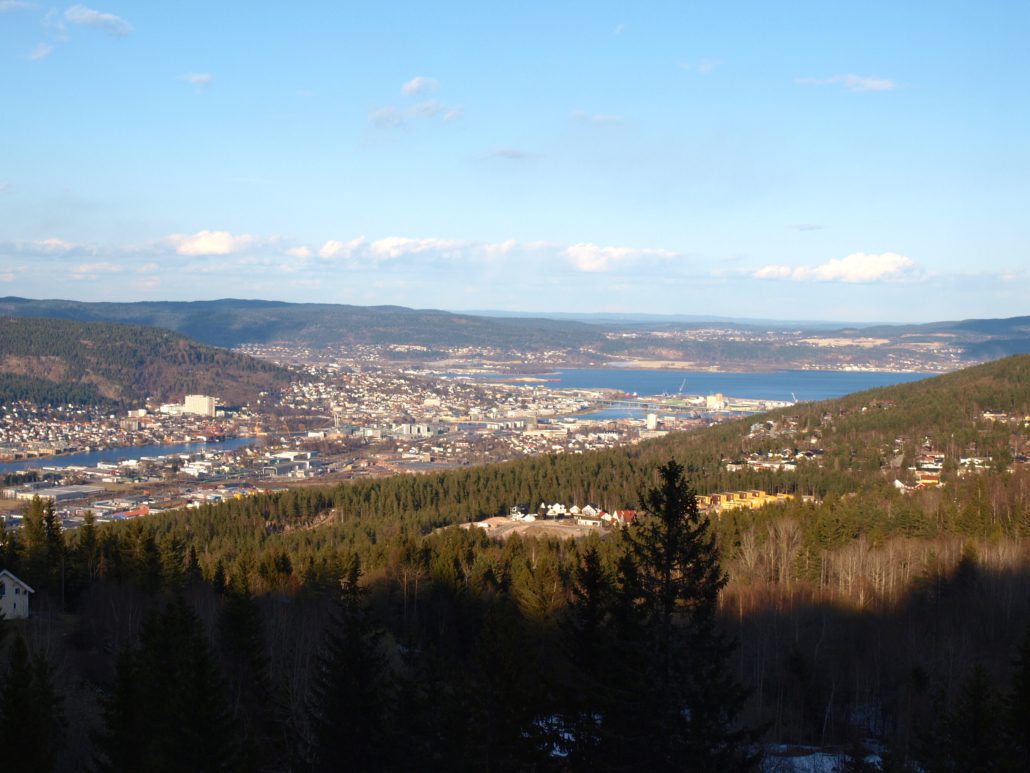 Deretter måtte jeg navigere meg gjennom bebyggelsen på Hallermoen Vest før jeg kom til en sti som tok meg til foten av Gruveåsen. Derfra og opp var det bare å følge stien som den slynger seg opp åsen. Et sted på veien er det fantastisk utsikt over Drammen og Drammensfjorden. Det kan være verdt å stoppe her og nyte utsikten litt for den kommer ikke tilbake lenger opp på åsen. Men for å fullføre merkinga måtte jeg opp og da tok jeg også turen innom det store radiofyret som står der. Det ble brukt i forbindelse med innflyvningen til gamle Fornebu flyplass. Hva det er blitt brukt til etter av Fornebu ble nedlagt vet jeg ikke.
