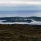 1,5 timer etter jeg startet turen nede i fjæresteinen ved Gullstein stod jeg på toppen av Skarven, 896 moh. Det blåste godt oppe på toppen så det var ikke noe blivende sted, men utsikten måtte nytes litt før jeg gikk ned igjen. Best var den mot nord hvor man ser rett ut på Smøla og da særlig ut til vindmølleparken, som jeg også så fra Freikollen. Østover ser man rett inn i fjellene på Stabblandet. Sørover er det fjellene rundt Surnadal som dominerer, mens østover stirrer man rett inn i nabofjellet Jørenvågsalen. Skarven og Jørenvågsalen ligger på vær sin side av den botn som Gullsteindalen er, og ned til bunnen er det flere hundre meter, og det er bratt. For meg med et ørlite snev av akrofobi ble det et godt sug i magen når jeg kikket ned.