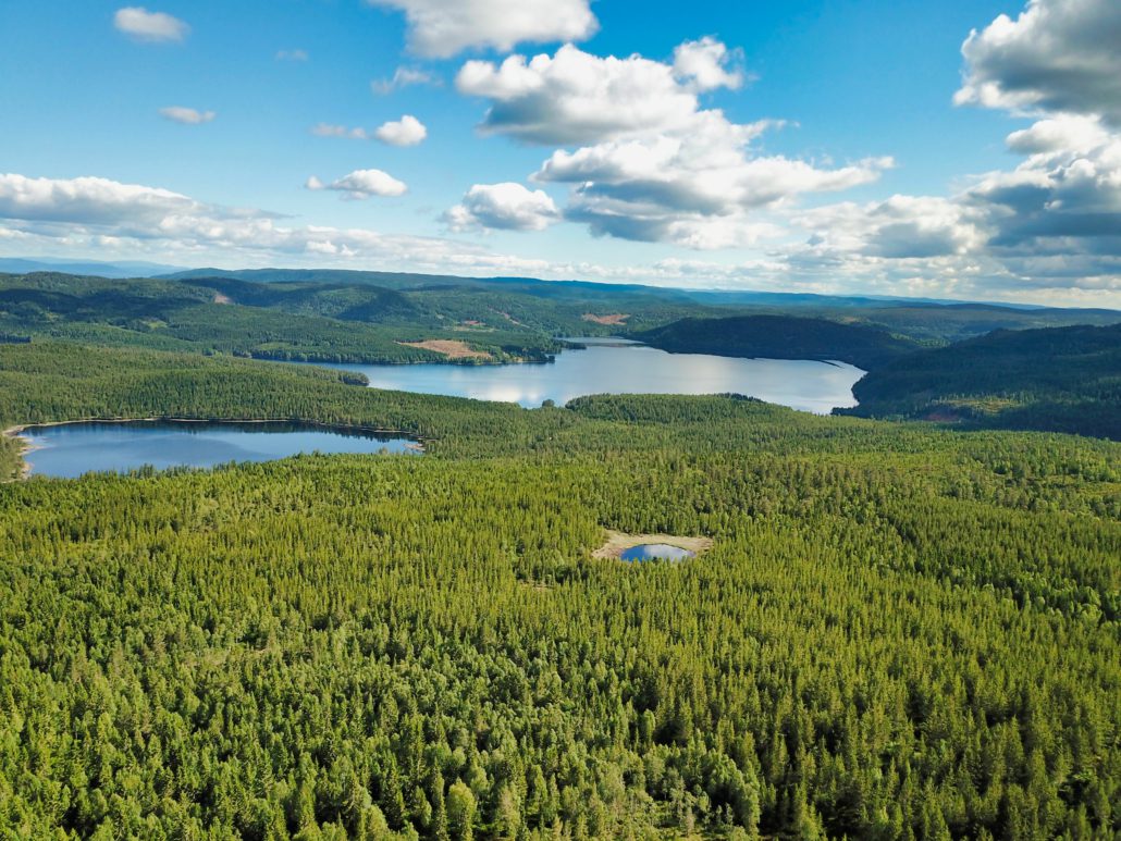 Selv ikke toppunktet var det mulig å peke ut uten å ta de tekniske hjelpemidlene til bruk. Men dette er nok mer en topp for bærplukkere og ikke tindranglere. Noen utsikt å snakke om er det heller ikke. Til det er det for mange trær som omkranser toppen. Men jeg slapp drona fri og fikk noen gode bilder av omgivelsene.