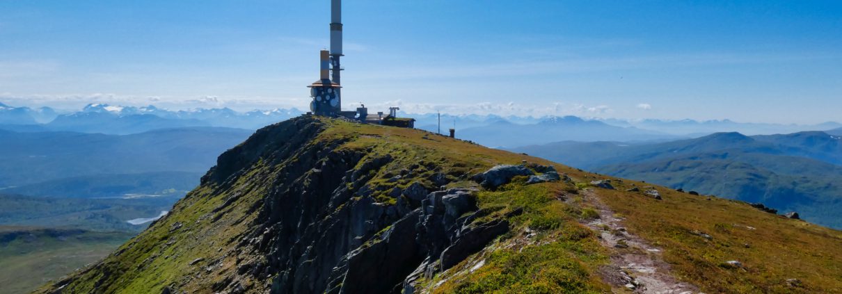 Etter en time og et kvarter var jeg oppe på toppen. Herfra hadde jeg utsikt til alle hjørner av Nordmøre. Toppene rundt omkring var det jeg kunne se nå. Tåka skulte de lavereliggende områdene. Det var bare å bruke samme taktikk som på Meekknoken, vente tåka ut. Her slapp jeg i det minste å slippe meg ned fjellet. Det var bare å legge seg ned i solsteika på toppen og vente på bedre vær i lavlandet.