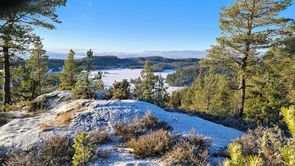 Kleiveren er en ørliten juvel i de søndre delene av Finnemarka. Jeg har vært her før på sommerføre, men i dag lå det litt snø i terrenget.