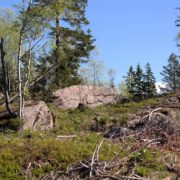 200-300 meter fra toppen slutter den maskinkjørte veien, og kun et svakt synlig tråkk går videre mot toppen. Heldigvis er det meste av motbakker unnagjort, og det er åpen og lettgått skog videre, så det er greit å få oversikt over veien videre.