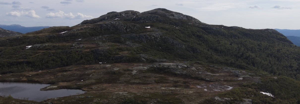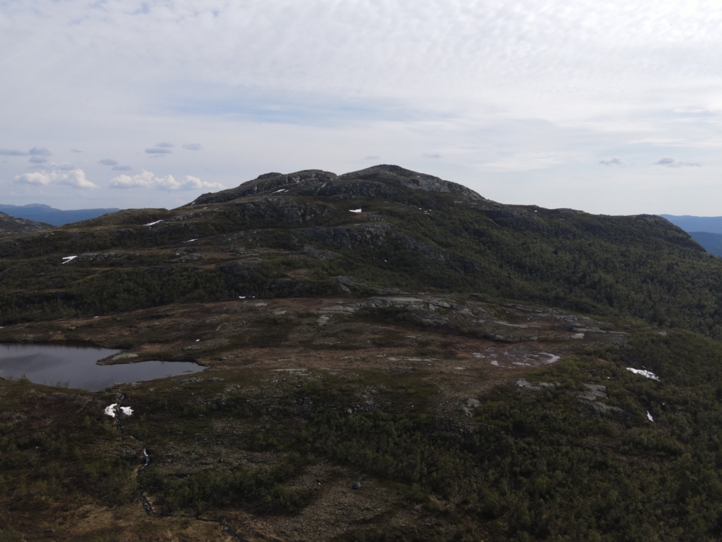Nå ventet en ganske flat etappe bort til Krosstjønn, før det ble en siste kneik opp til Byggjingen. Den siste bakken opp fra Krosstjønn opp til Byggjingen er en stigning på cirka 150 høydemeter, men terrenget er åpent og lettgått, og sekken la jeg fra meg i bånn av bakken.