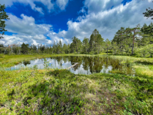 Delvis ny tur i Finnemarka. Startet fra Glitreveibommen og gikk mot Veslesetra. Det var hogd en del langs veien siden jeg var her sist. Pussig hvordan et hogstfelt kan endre oppfattelsen av veien. Jeg kjente meg nesten ikke igjen, til tross for at jeg har gått den mange ganger.