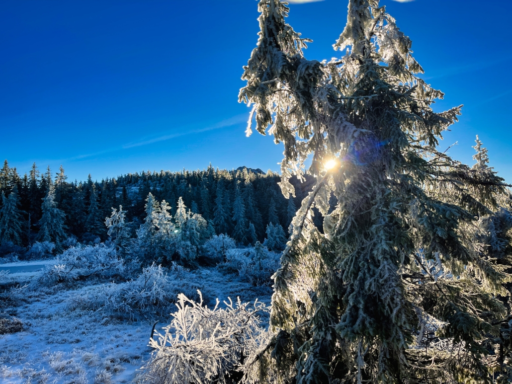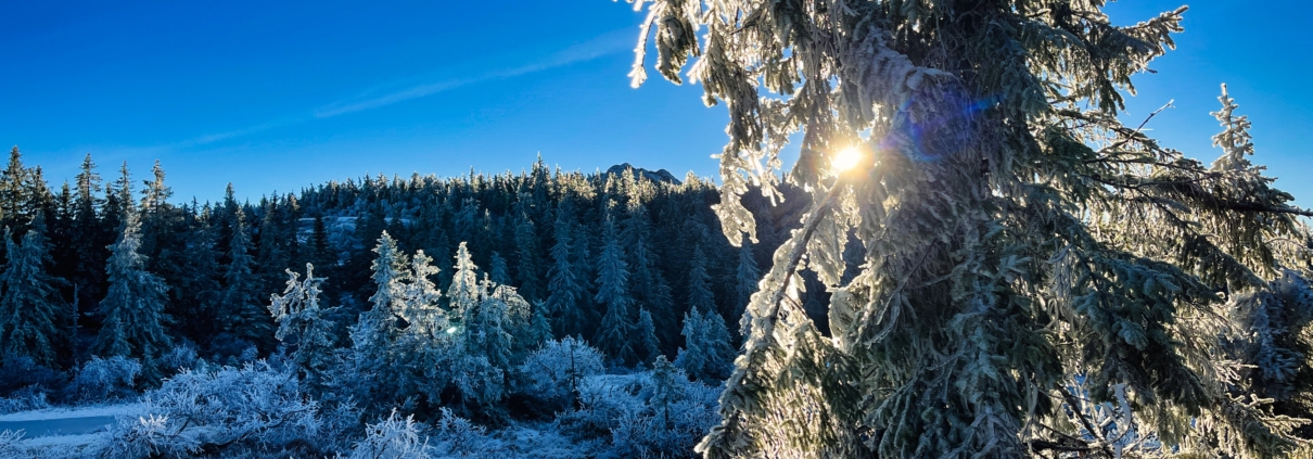 Overgangen fra tjukk granskog til mer høyfjellsskog markeres med en skikkelig kneik opp et skard mellom Grønlikollen og Skrimtoppen. Når man har gått opp den ser man straks at man nærmer seg snaufjellet.